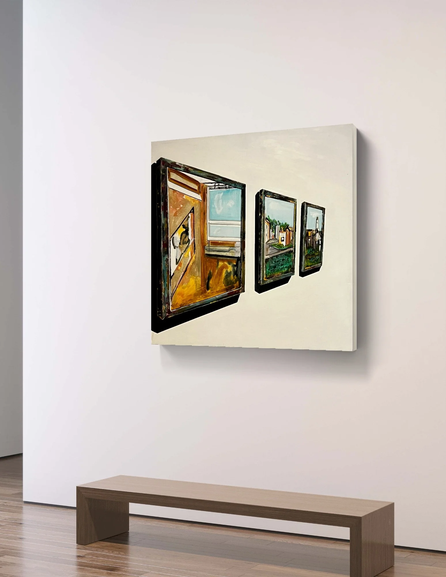 A painting taken from an interesting series of photographs as a gallery displayed set of photographs of urban life and space.